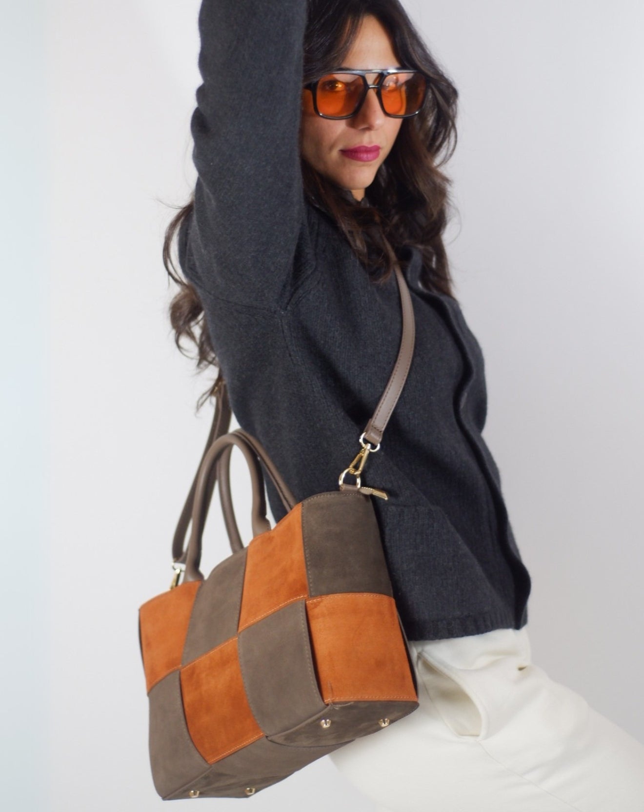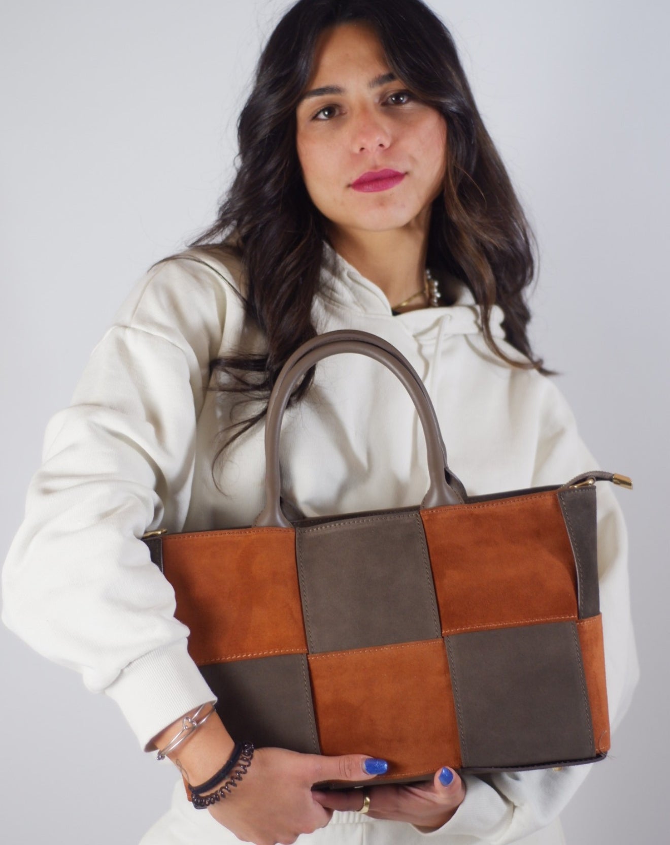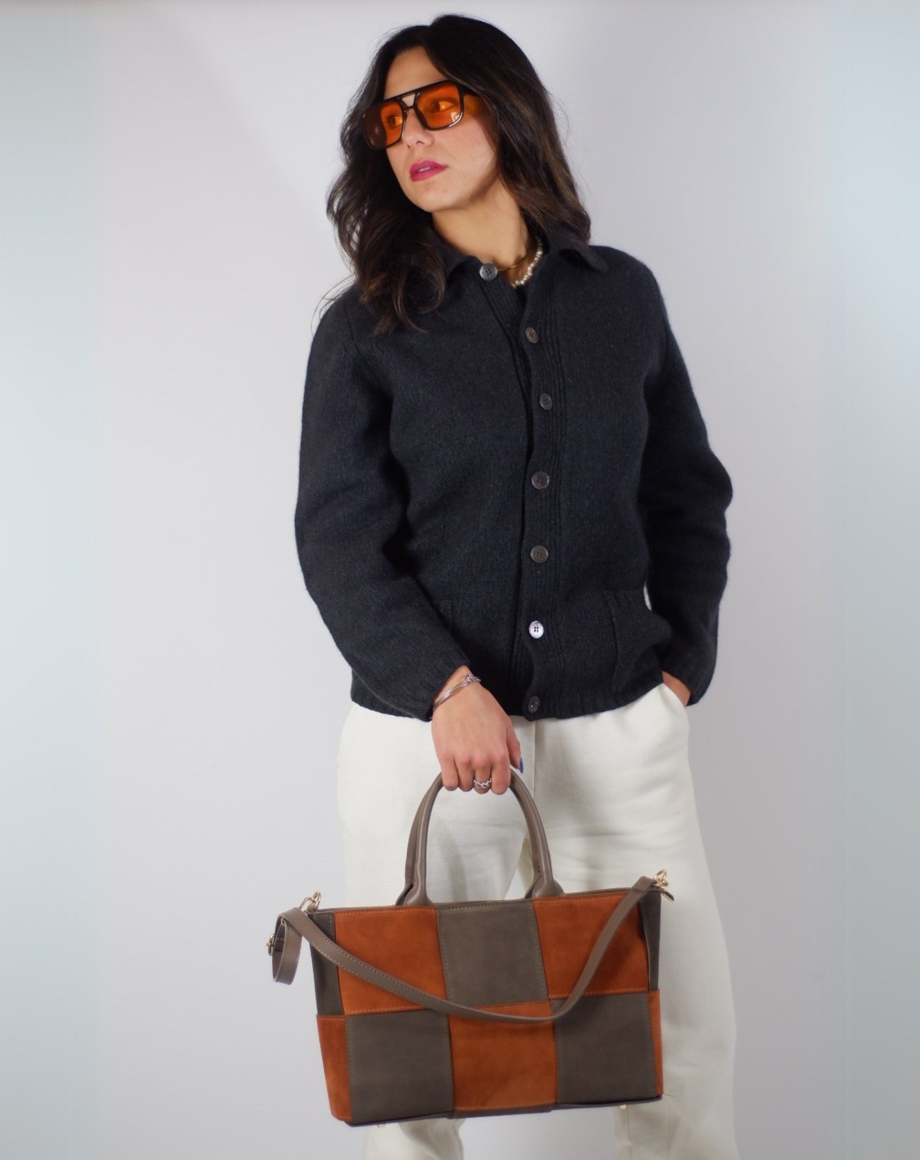 Gli interni, suddivisi in tre scomparti ben organizzati, offrono spazio e ordine, rendendo questa borsa ideale per il lavoro e la quotidianità. I manici rigidi permettono di portarla a mano con eleganza, mentre la tracolla regolabile consente di indossarla anche a spalla per un tocco più informale. La base è dotata di piedini protettivi, un dettaglio pensato per preservarne la bellezza nel tempo.