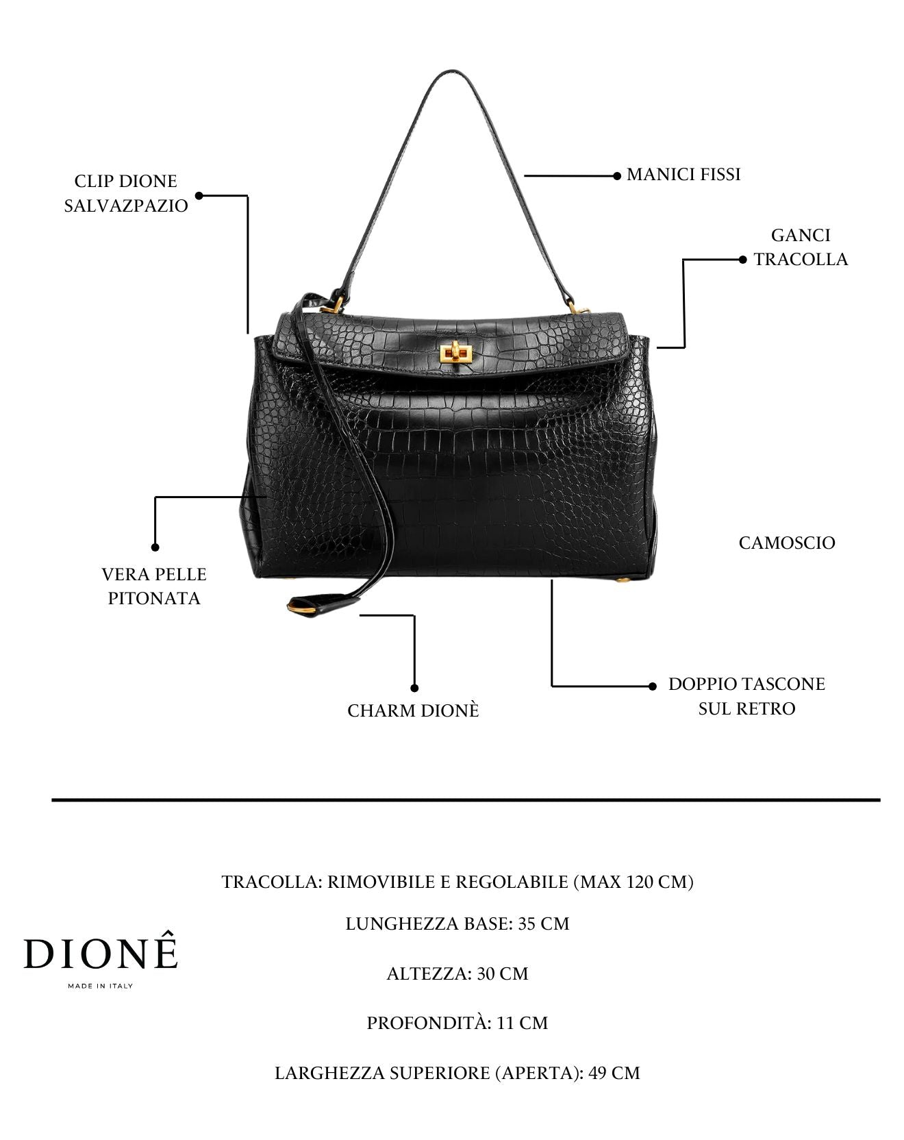 Ogni borsa Dionè è frutto di un processo meticoloso che unisce tradizione e innovazione. Collaboriamo con laboratori italiani selezionati, dove l'arte della pellettiera viene tramandata di generazione in generazione. Dalla scelta dei materiali alla rifinitura dei dettagli, ogni fase è curata con la massima attenzione per garantire un prodotto che non sia solo bello, ma anche etico e sostenibile.