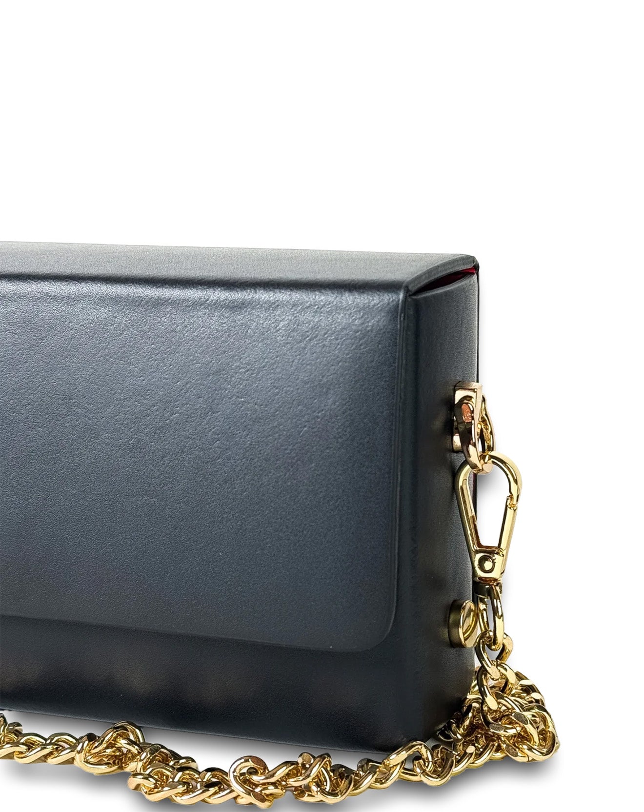 Realizzata in pelle liscia di alta qualità, questa mini bag rappresenta il lusso discreto. Compatta ma funzionale, è perfetta per contenere i tuoi essenziali con stile. La tracolla in catena dorata aggiunge un tocco glamour, mentre la chiusura a pattina garantisce praticità ed eleganza.