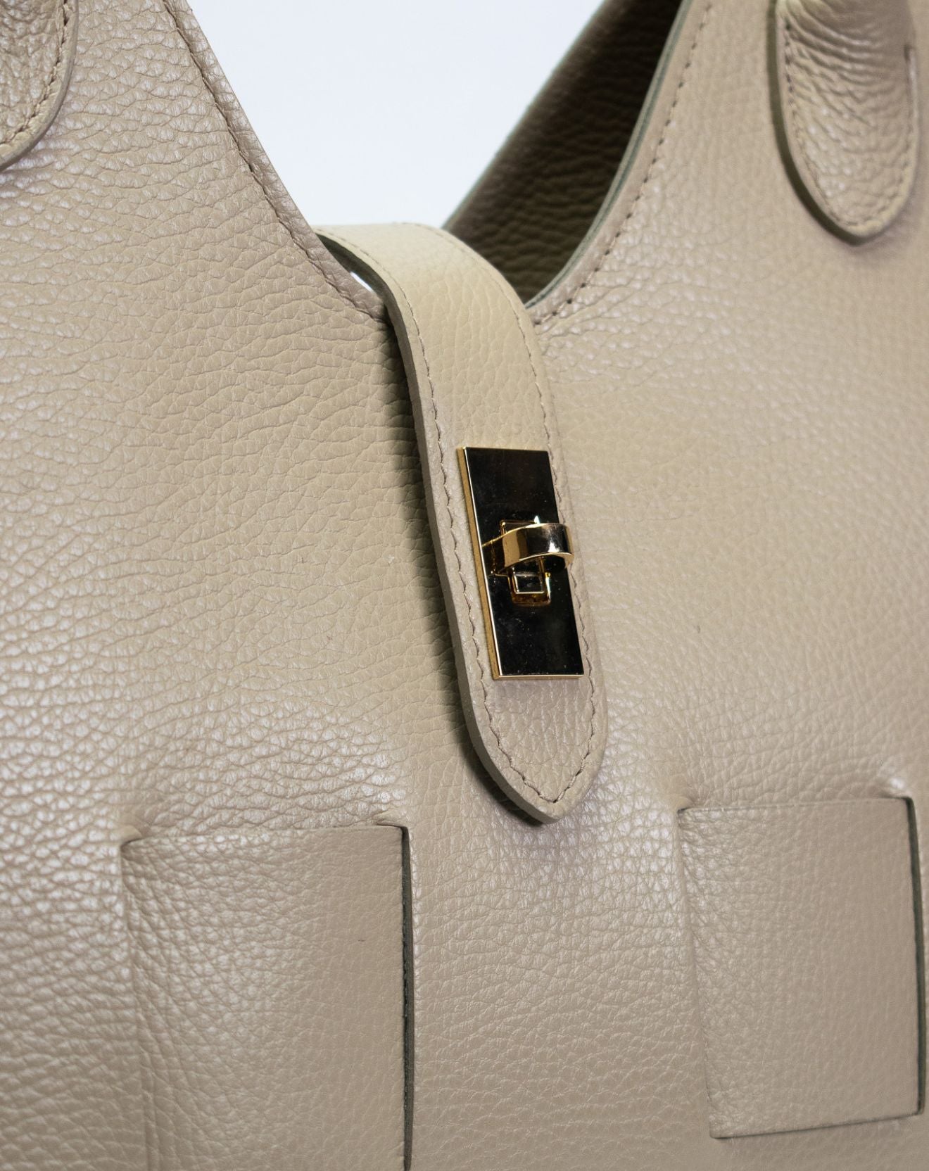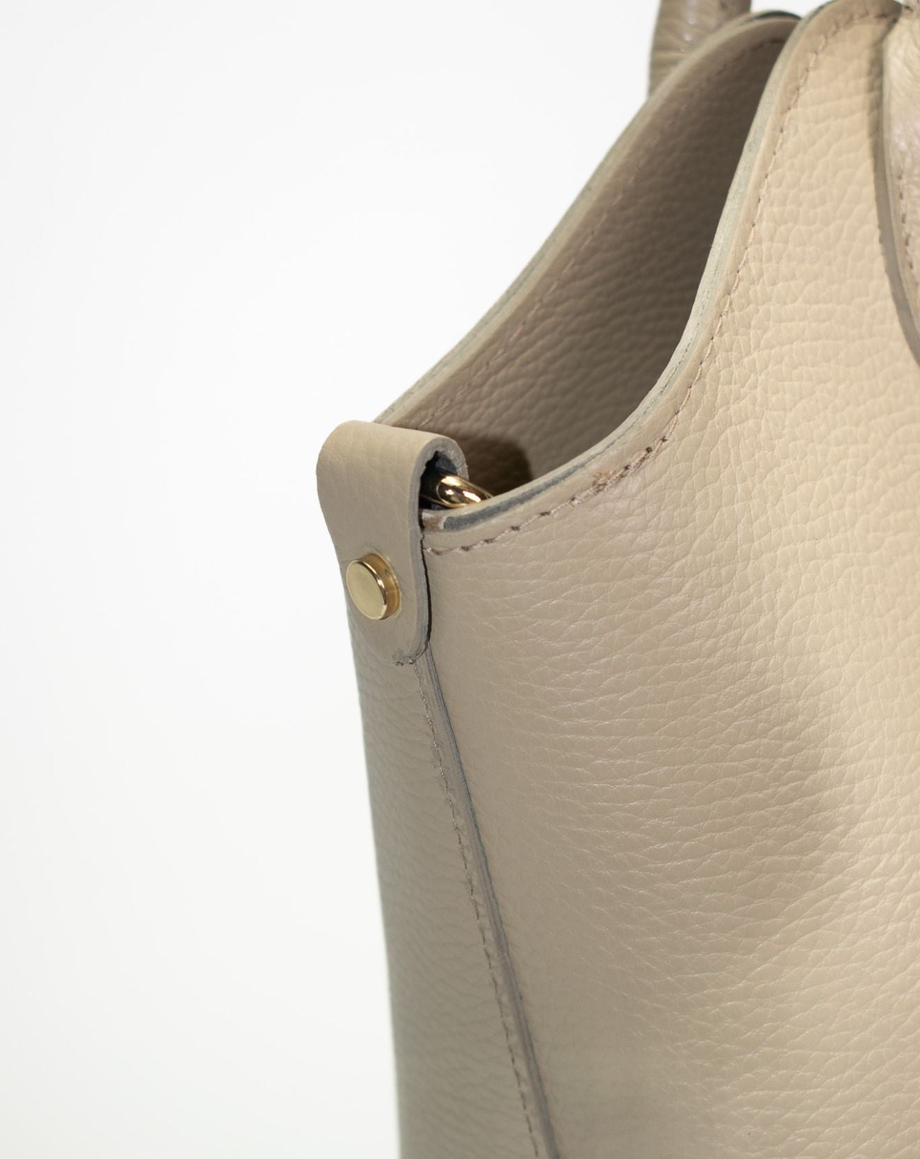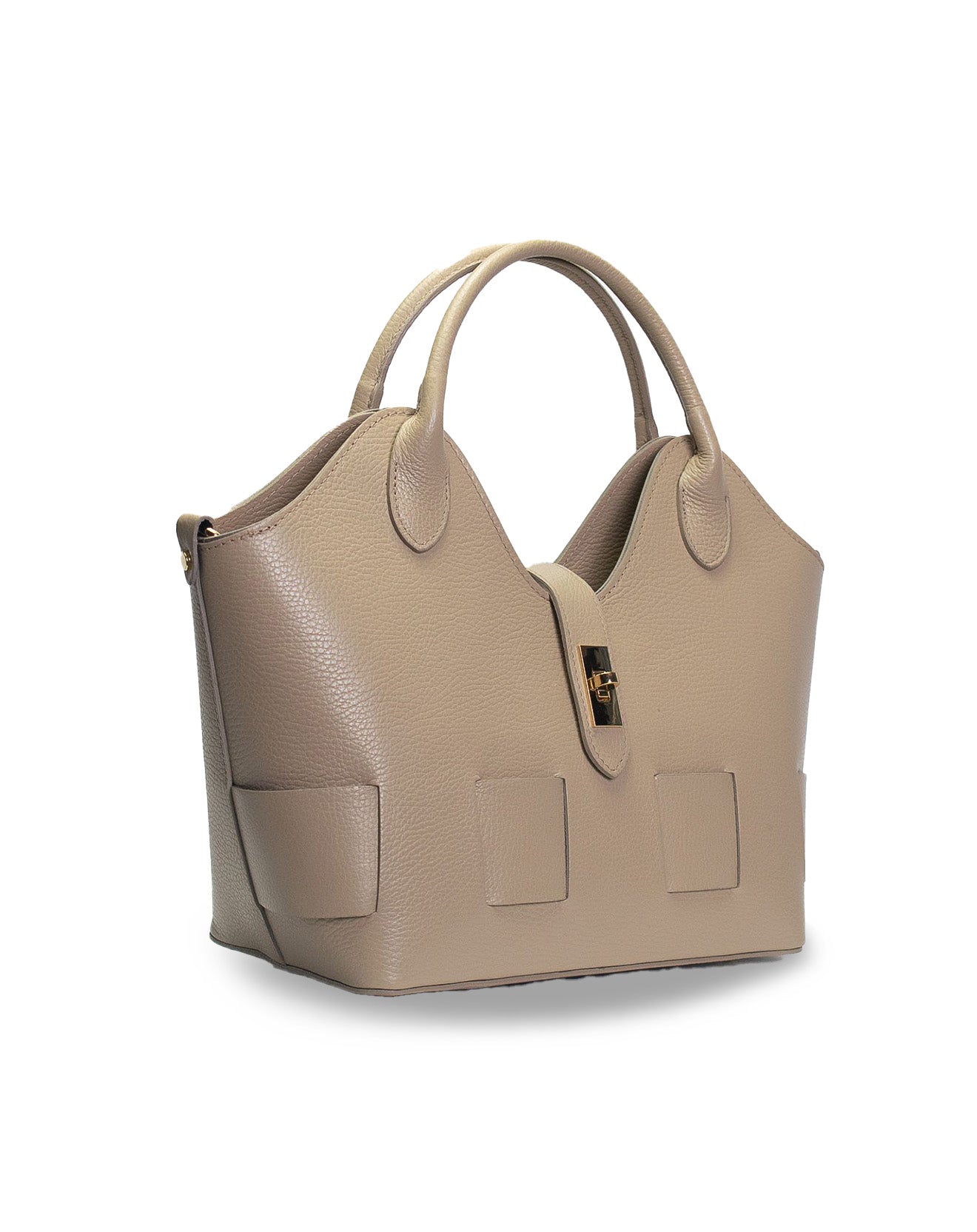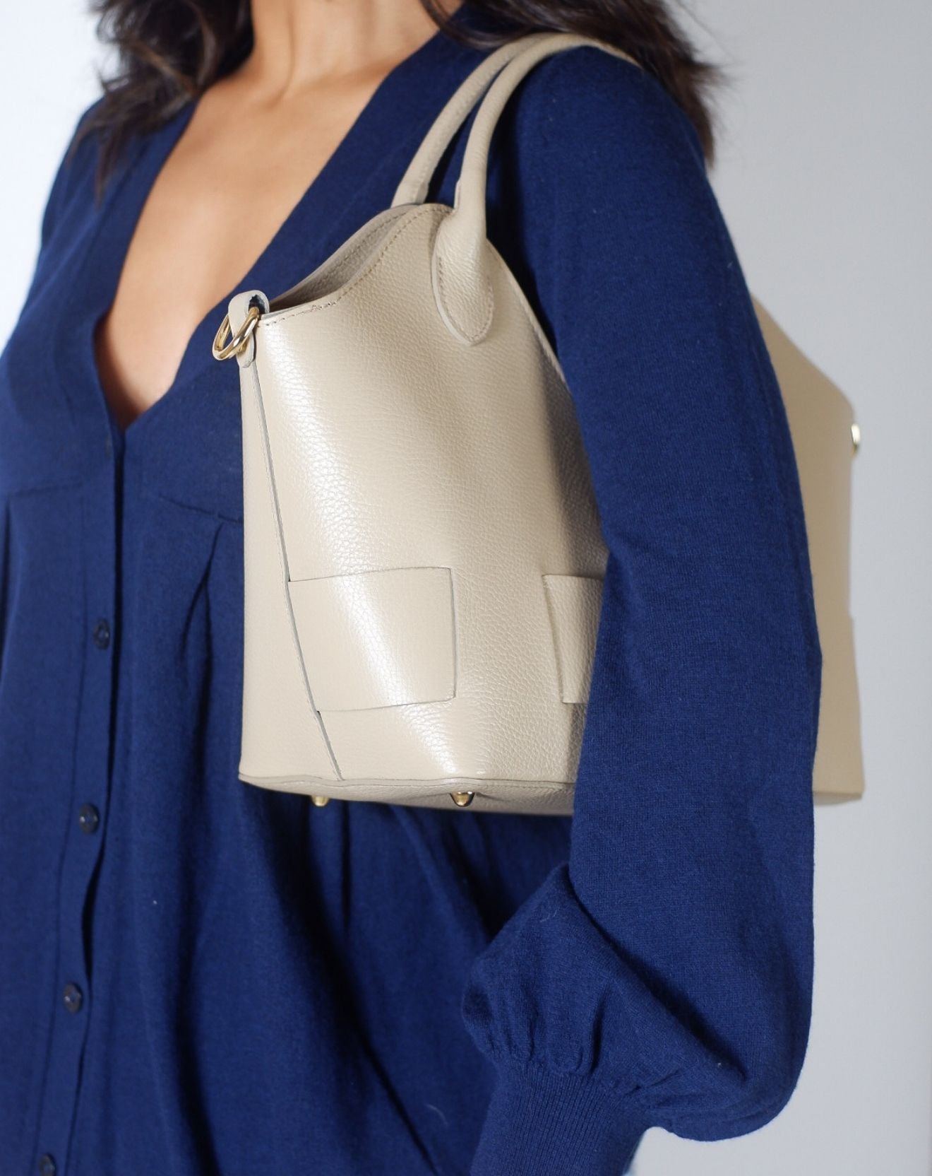 Questa borsa a mano Dionè è l'incarnazione della forza e dell'eleganza per la donna moderna che affronta la vita con determinazione. Realizzata in vera pelle beige, offre non solo un aspetto estetico di raffinata bellezza ma anche una resistenza notevole che promette di attraversare le stagioni senza perdere il suo fascino.