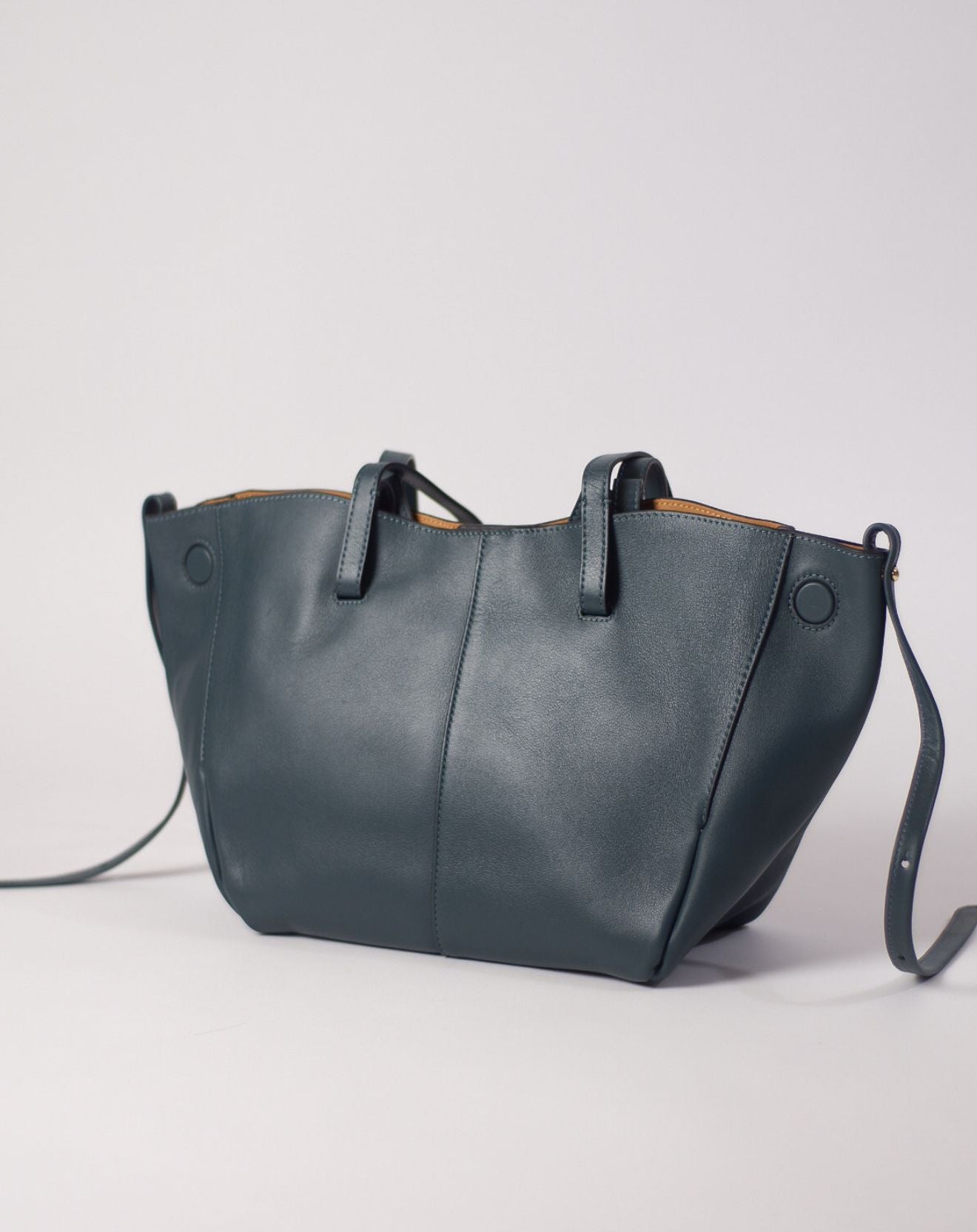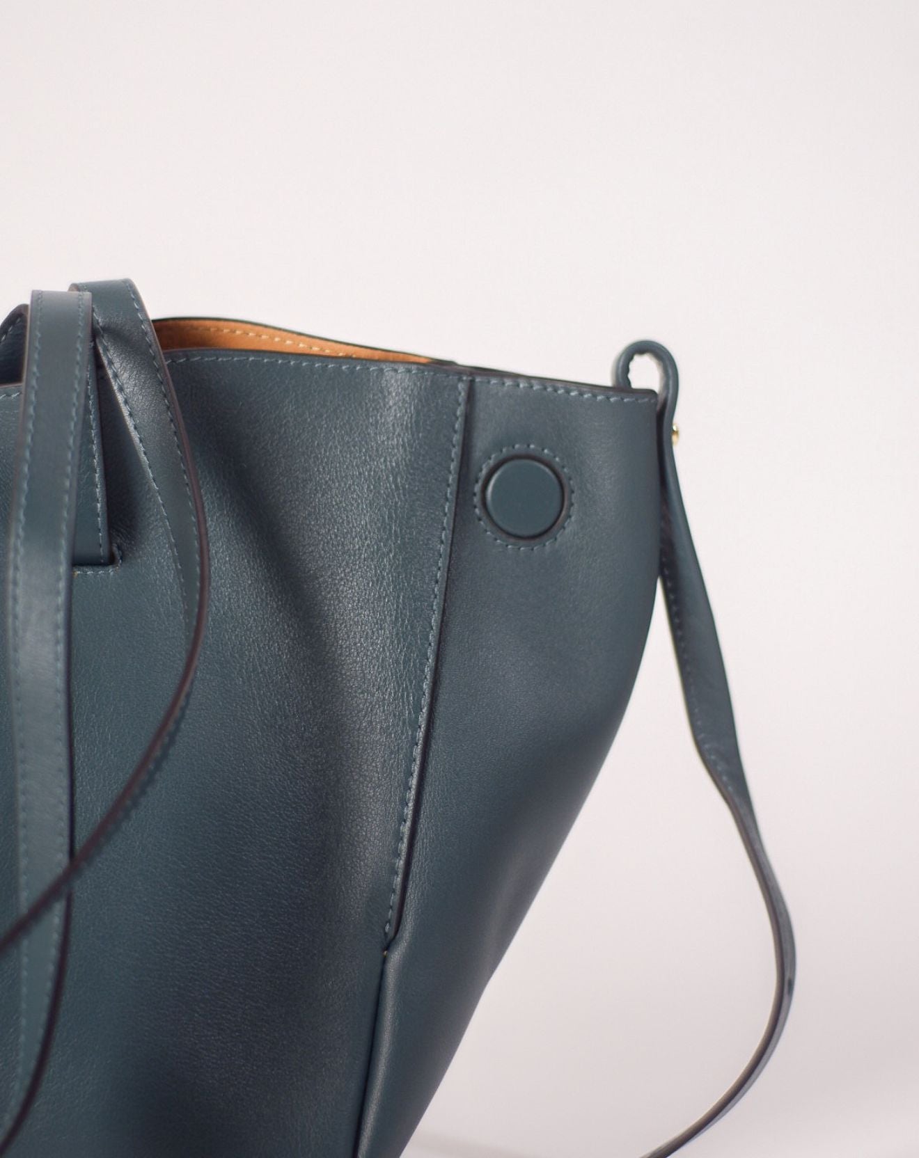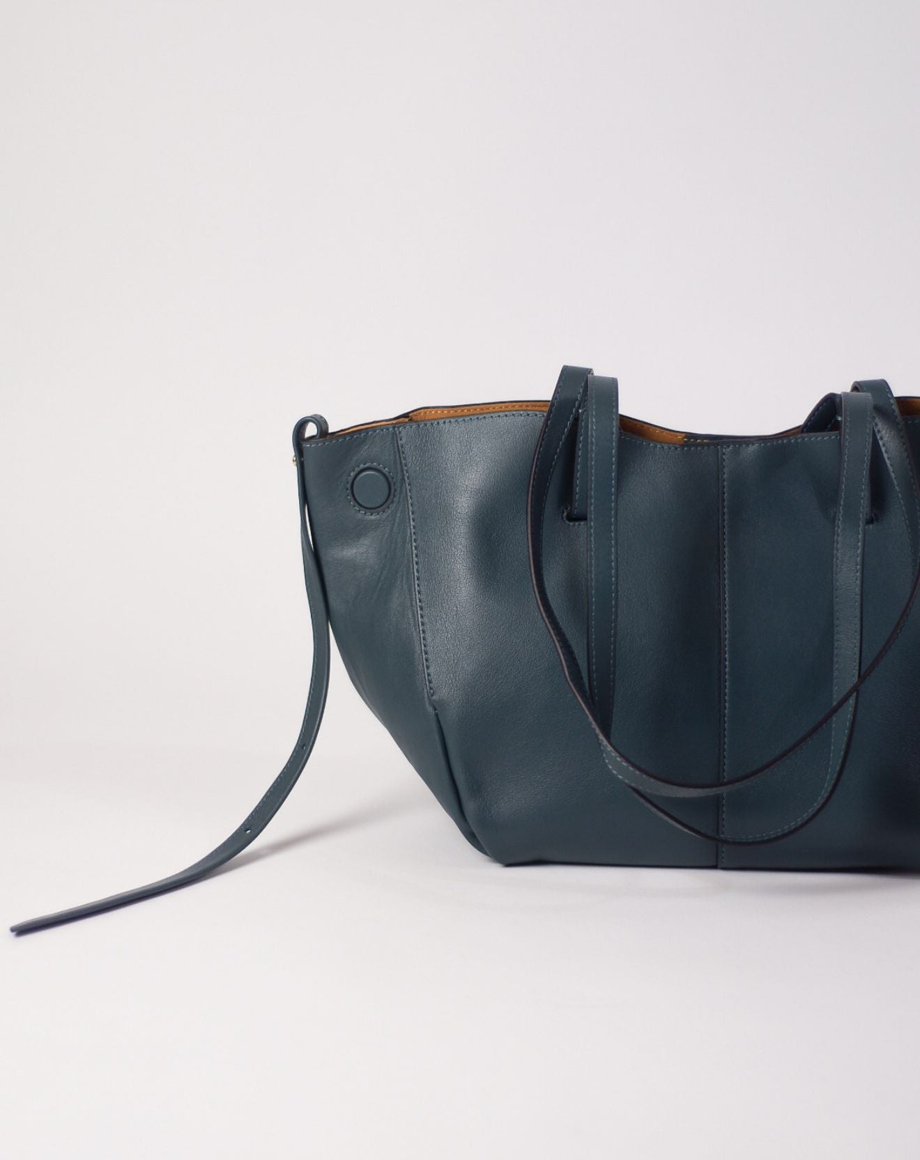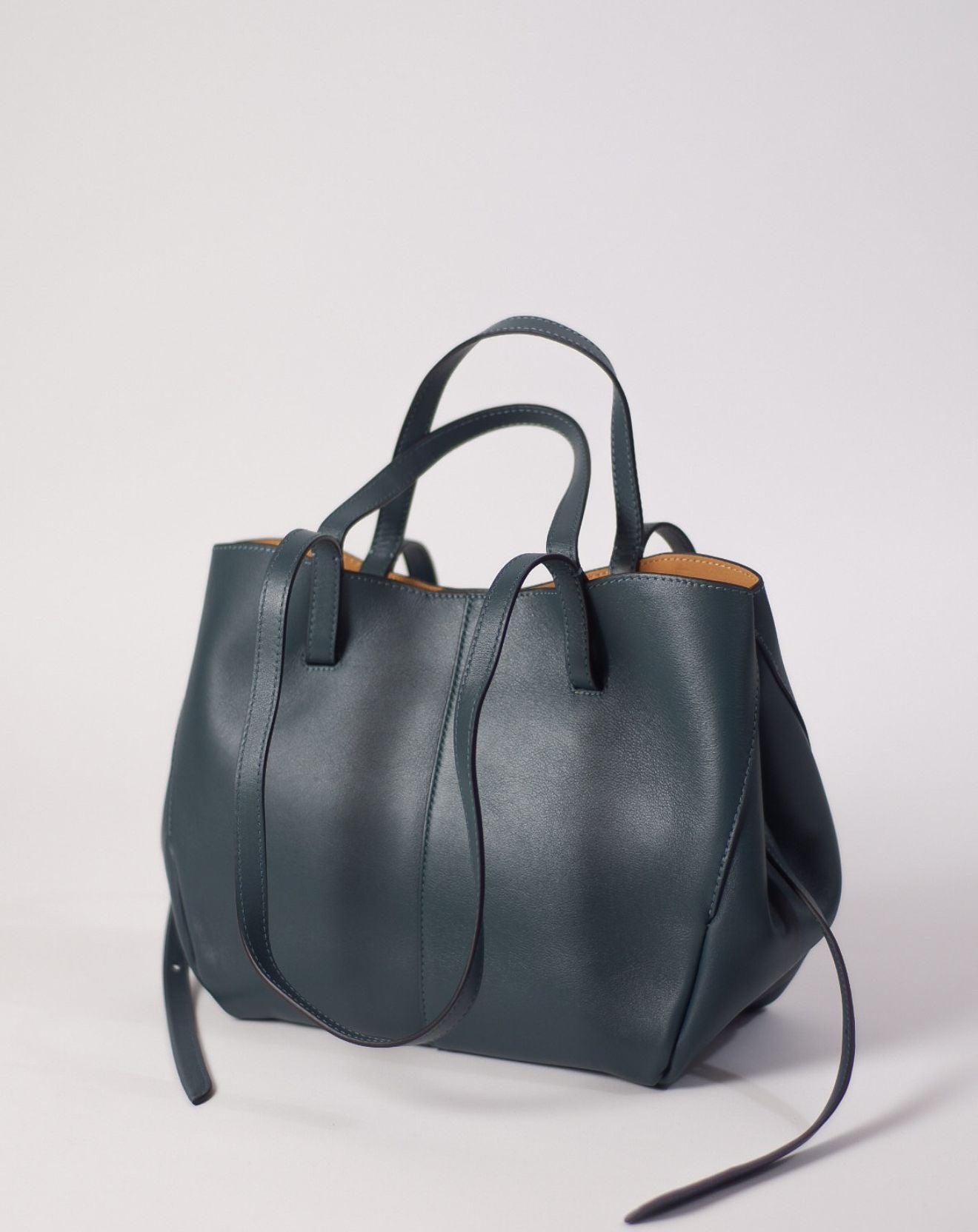 Immagina una borsa che si adatta al ritmo della tua giornata con un semplice tocco: ecco a te la nostra tote bag in vera pelle! Questa meraviglia di stile può trasformarsi da una spaziosa "barchetta" per quei giorni pieni di impegni, a una forma più compatta per un look serale elegante.