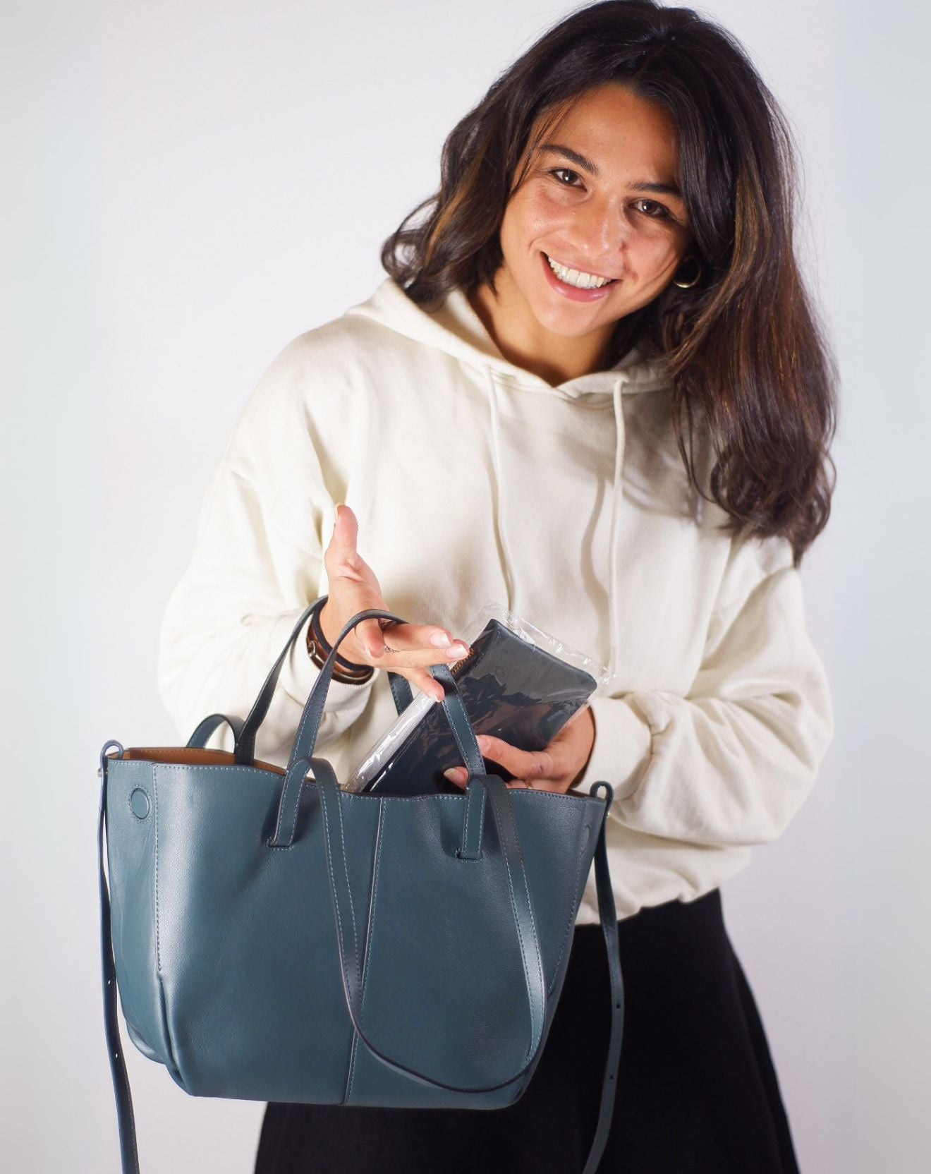 All'interno, troverai un pratico borsellino in pelle rimovibile, perfetto per tenere al sicuro i tuoi piccoli tesori. Con spazio a sufficienza per un pc da 13 pollici, questa borsa è pronta ad accompagnarti ovunque, mantenendo sempre un'eleganza impeccabile.